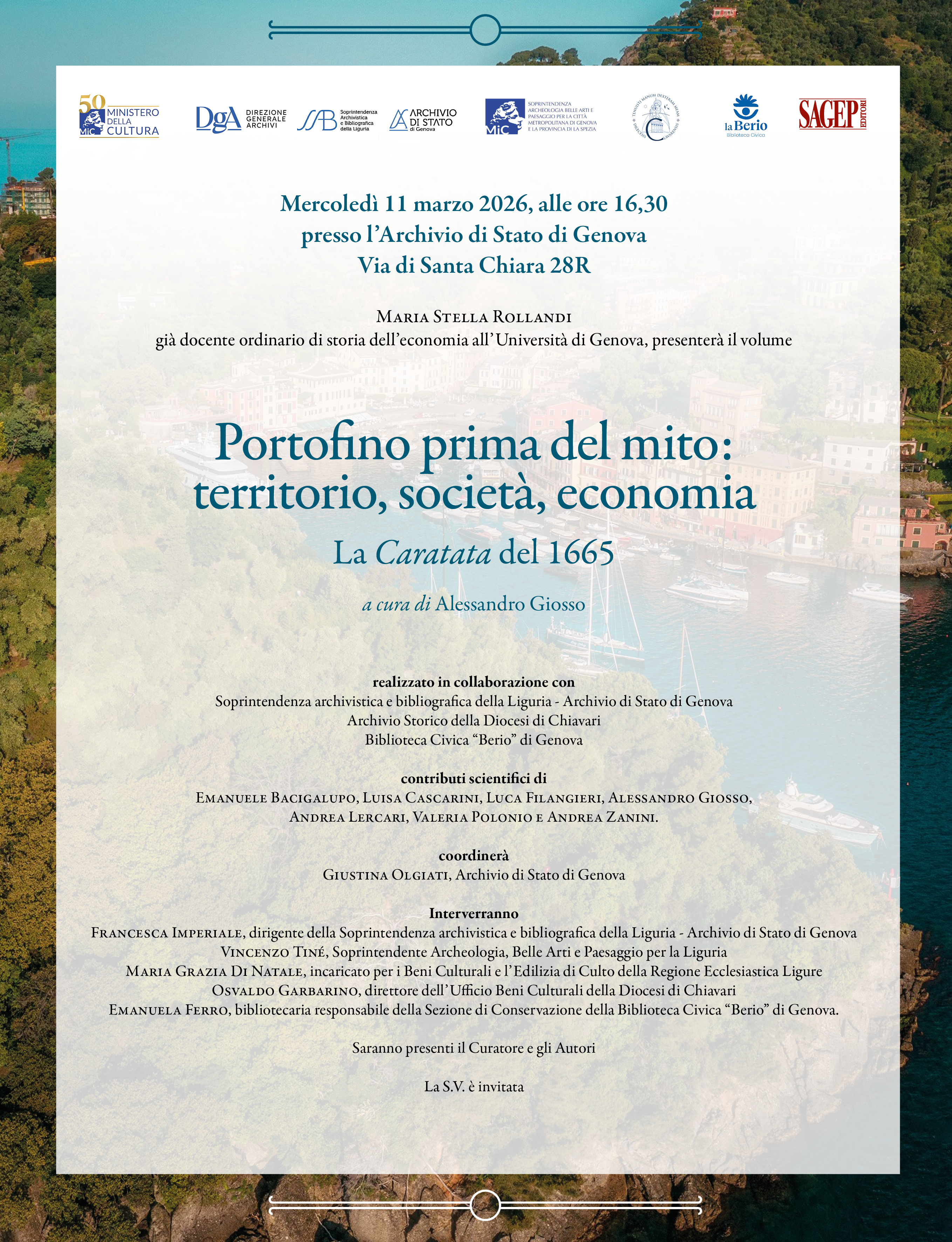 Trasmettiamo l’invito alla presentazione del volume Portofino prima del mito: territorio, società, economia. La Caratata del 1665, a cura di…