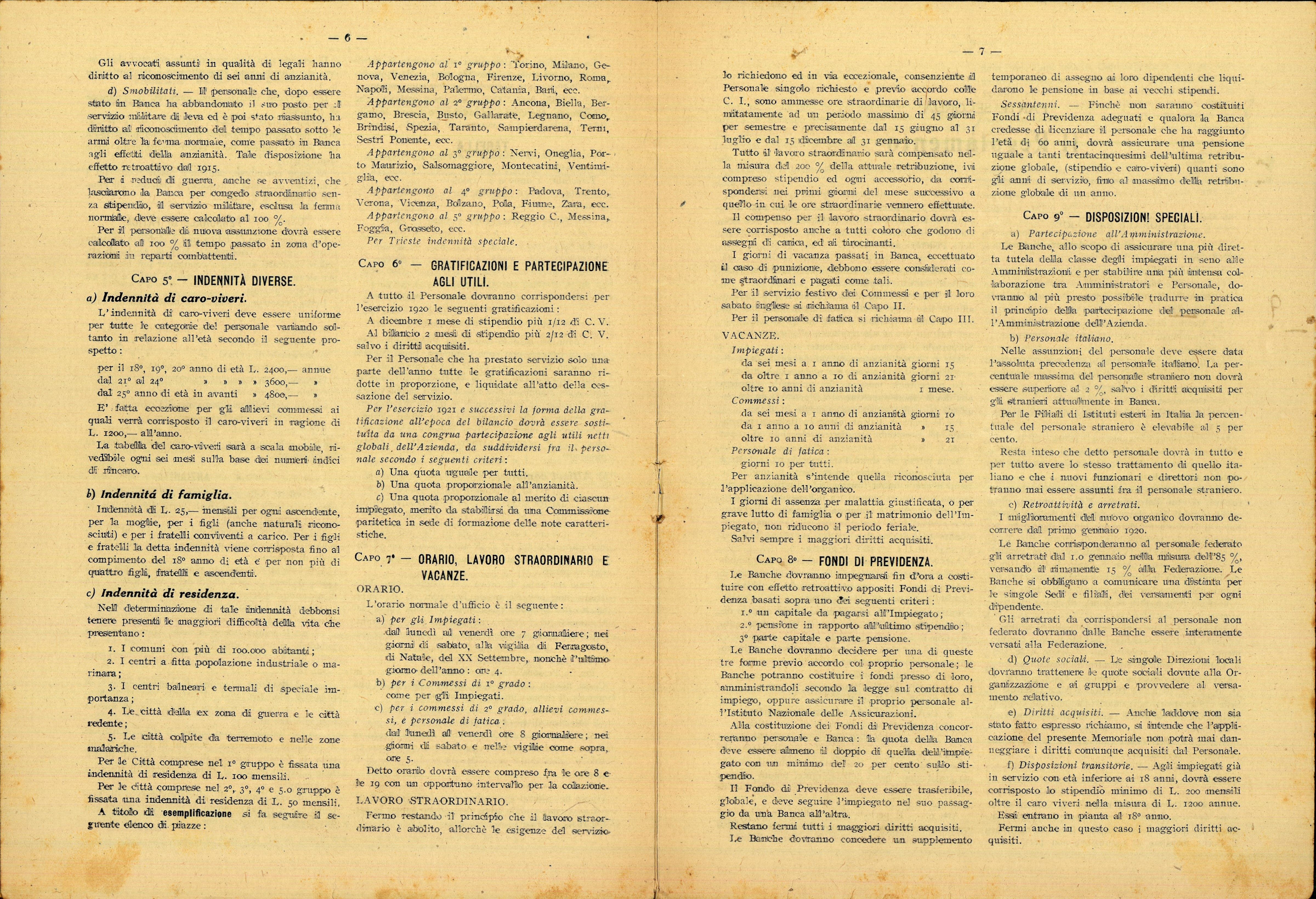 Come chiaramente indicato nelle premesse, il testo corrisponde a quello che oggi si chiamerebbe un contratto collettivo nazionale di comparto: “dopo maturo esame, dopo aver vagliato nuovamente e con analisi profonda le cause del nuovo disagio economico dei bancari, dopo avere altresì studiata la trasformazione del rapporto d’impiego per attribuirgli maggior senso di modernità in ossequio alle nuove concezioni economico-sociali oggi prevalenti, siamo venuti nella determinazione di completare con un nuovo Memoriale il contratto d’impiego”.