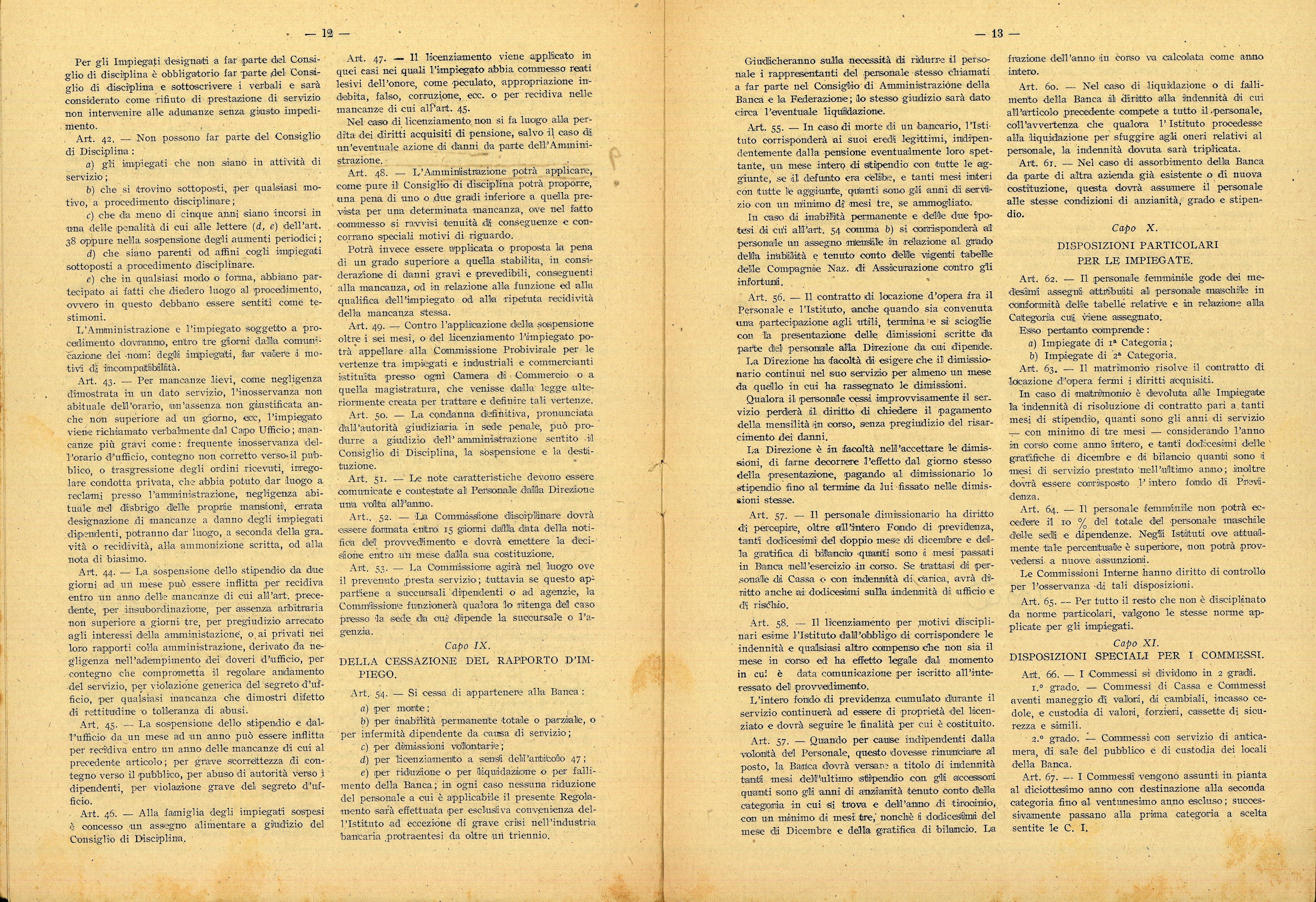 Il Memoriale prevede, alla voce “Disposizioni speciali per il personale femminile”, che il semplice matrimonio sia per le donne causa di risoluzione del contratto, “fermi i diritti acquisiti”.