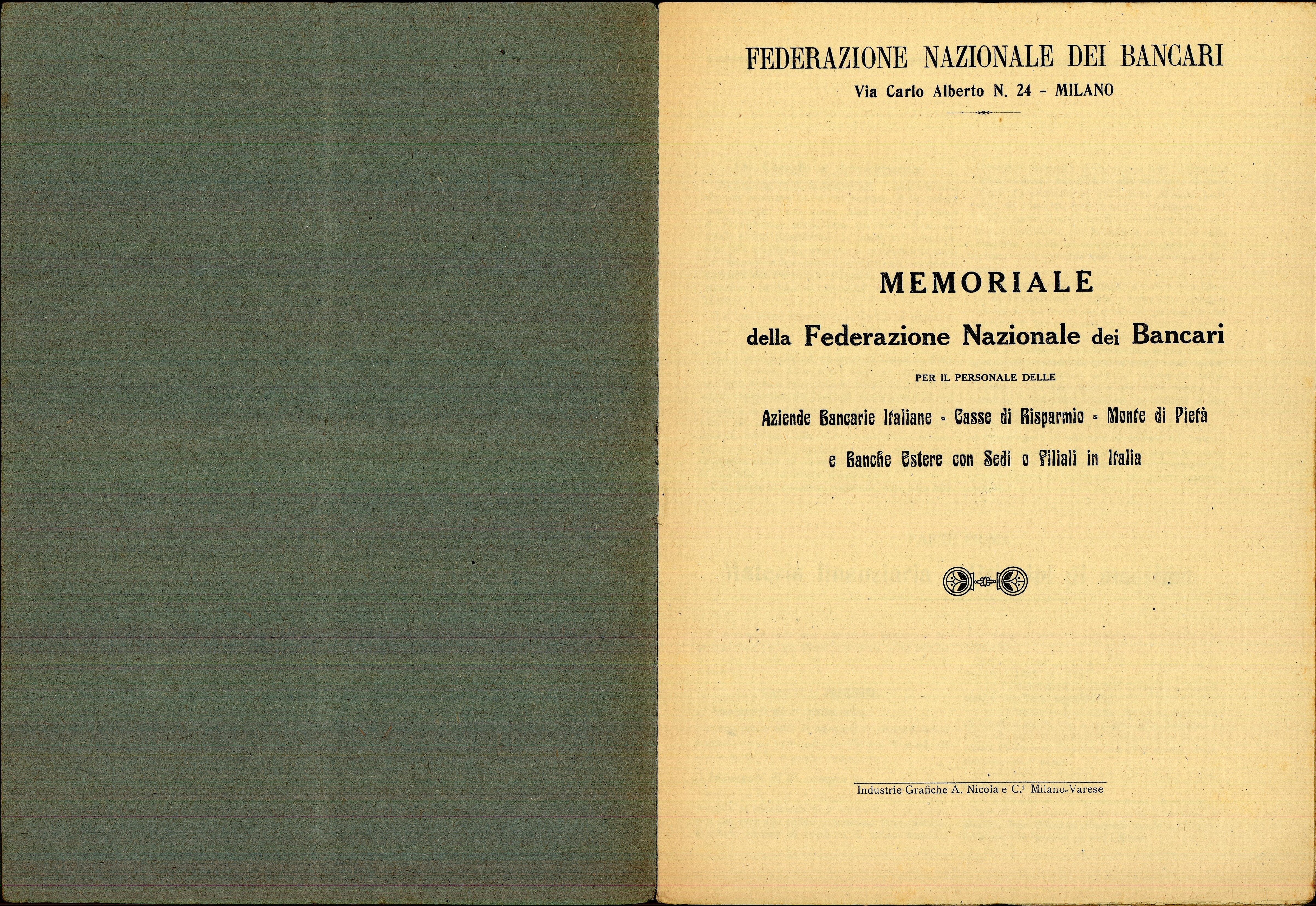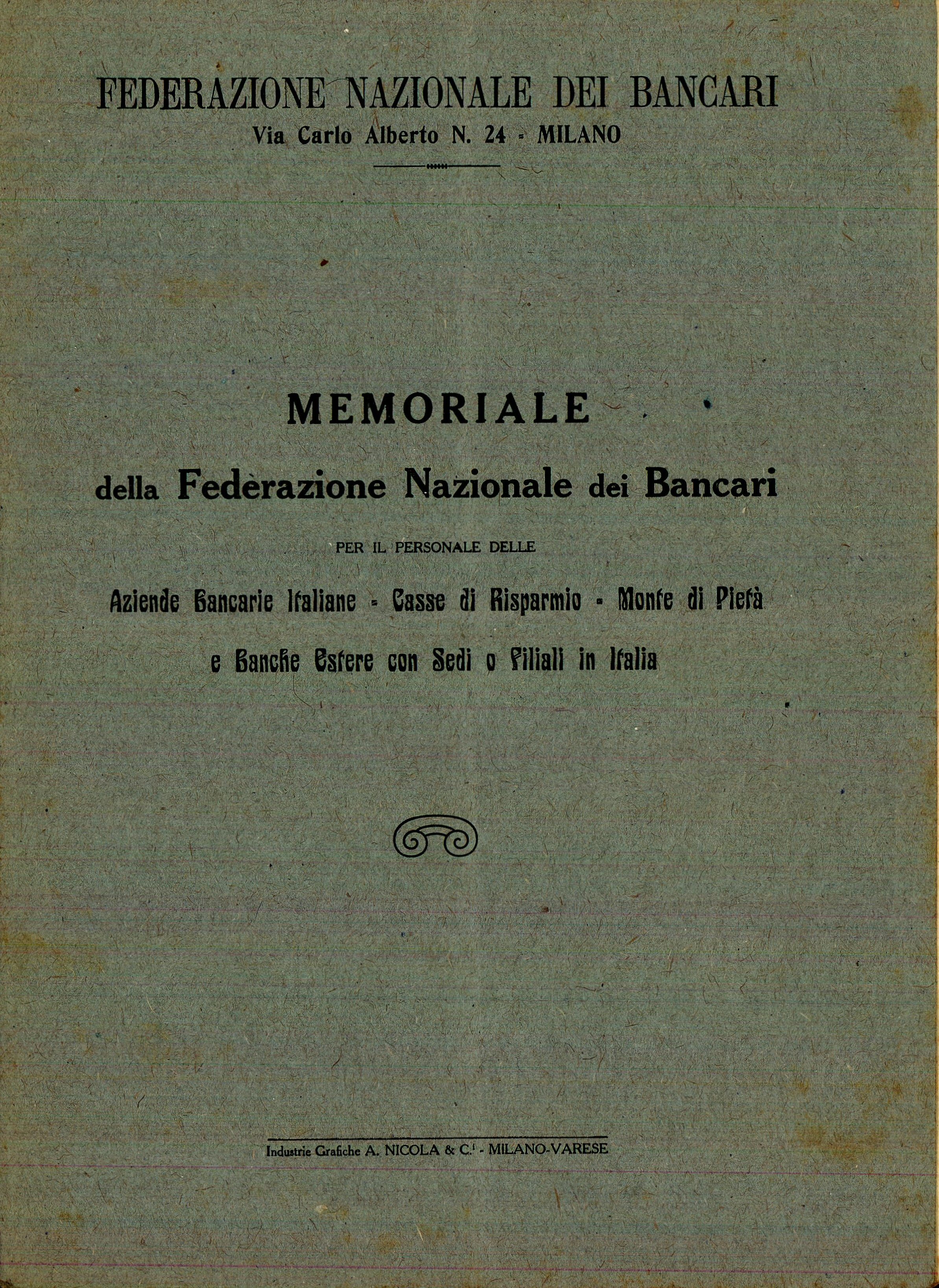 Memoriale della Federazione Nazionale dei Bancari per il personale delle Aziende Bancarie Italiane, Casse di Risparmio, Monte di Pietà e Banche Estere con sedi o filiali in Italia.