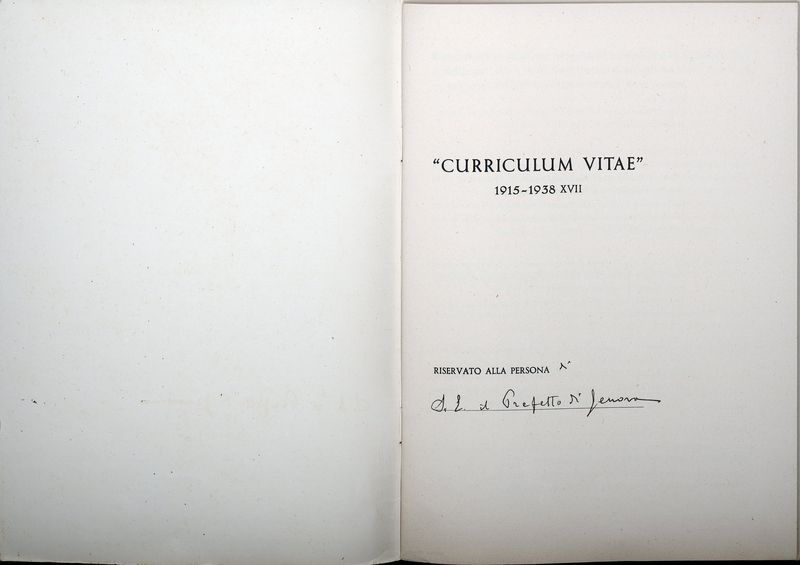 Comunque qualora l’eventuale revoca del provvedimento sia affidata al potere discrezionale dell’E. V. il sottoscritto si permette di richiamare alla Vs. attenzione, il suo passato di Volontario di guerra (della classe 1875) di combattente e di Fascista; ed allega il proprio “curriculum vitae” colla copia dei documenti che hanno servito ad ottenergli la “discriminazione”.