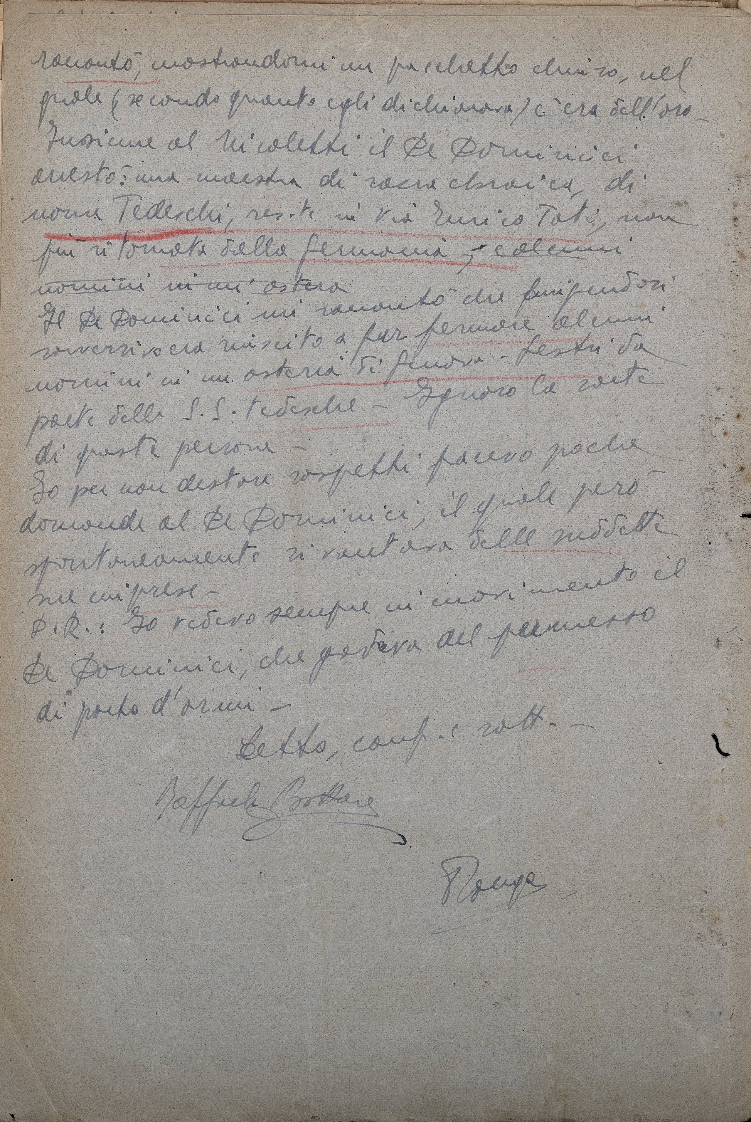 Insieme al Nicoletti il De Dominici arrestò una maestra di razza ebraica, di nome Tedeschi, residente in via Enrico Toti, non più ritornata dalla Germania.